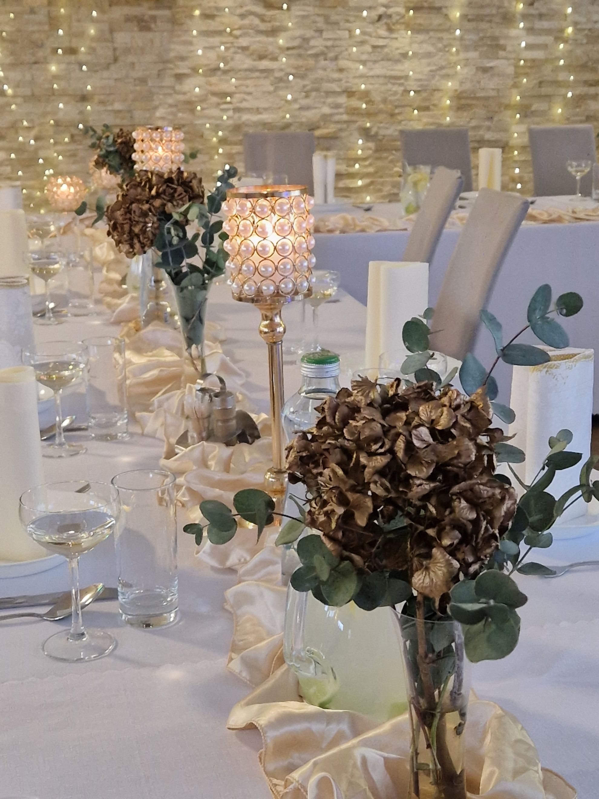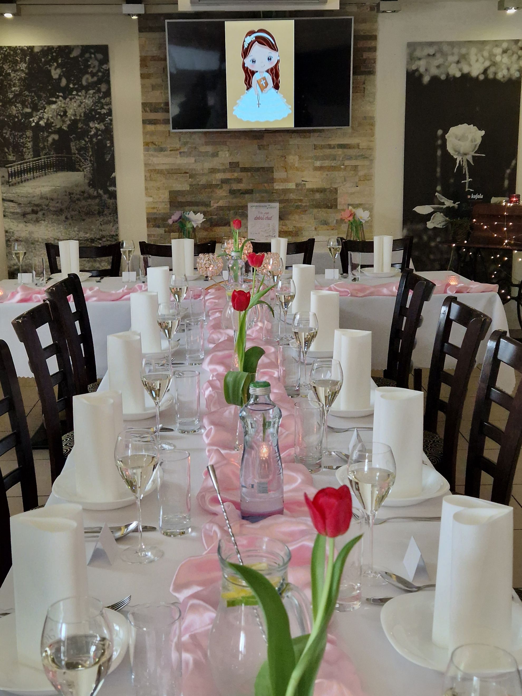 slavnostné nastretie stolov, kvety, štóly, servítky, svietniky, uvítaciu tabulu, nasvietenie priestoru, hudbu, ozvučenie...